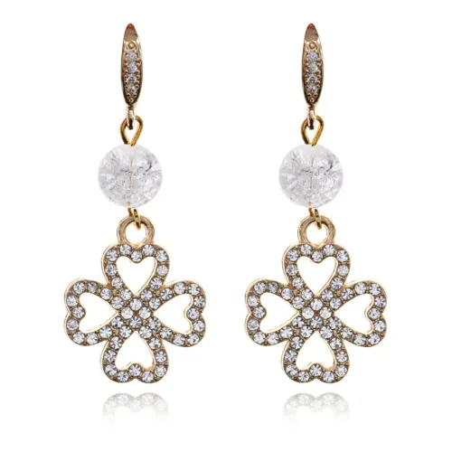 Серьги с подвеской Клевер, синт.камень Сахарный кварц 8мм SEC-09-09