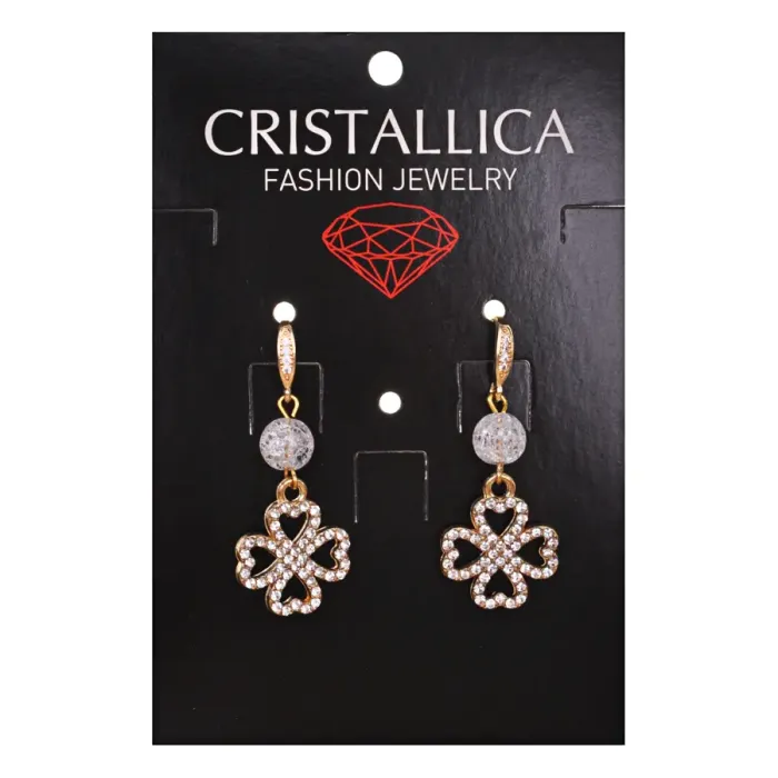 Серьги-амулеты из коллекции Cristallica с подвеской в форме клеверного листа и синтетическим камнем.