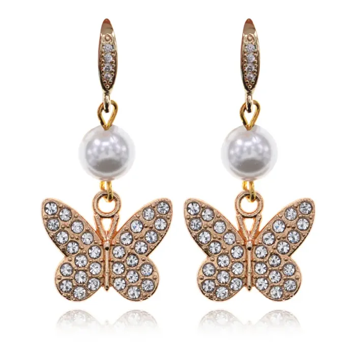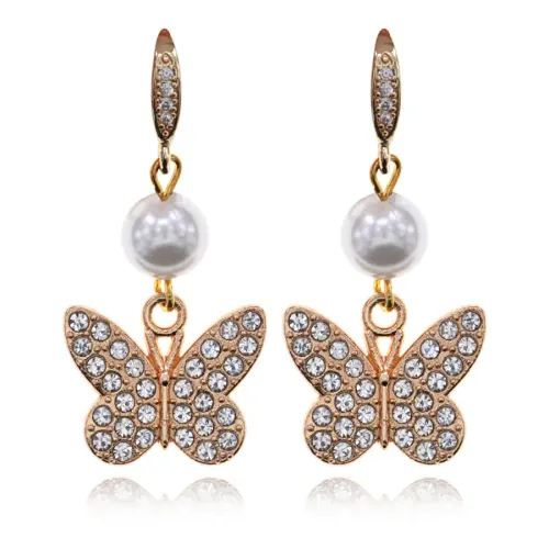 Серьги с подвеской в виде бабочки из искусственного жемчуга Майорка.