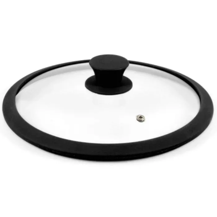 Основной материал крышки — закалённое стекло, которое отличается повышенной прочностью и термостойкостью. Силиконовый обод по краю обеспечивает герметичность, предотвращая проливание жидкости и защищая края посуды. Конструкция включает силиконовую кнопку, которая облегчает открывание и закрывание, а также служит термоизолирующей ручкой.