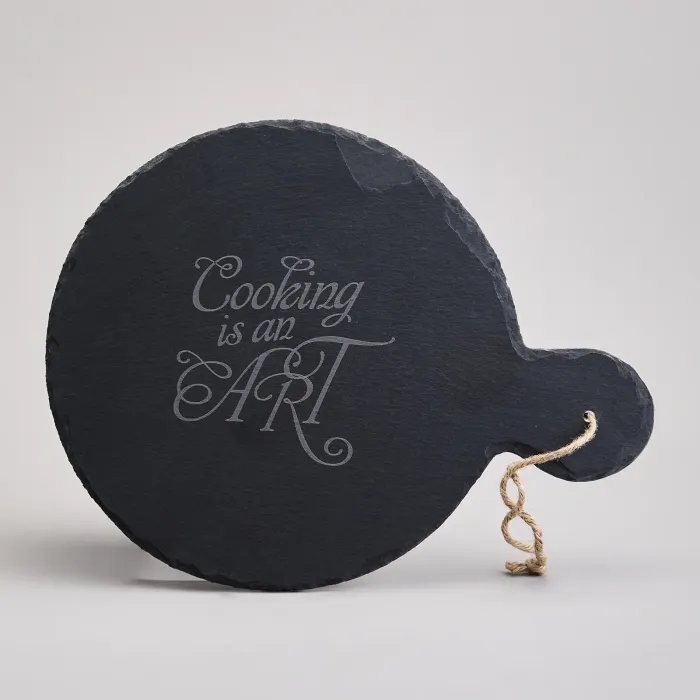 Материал сланец обеспечивает безопасность использования, препятствуя размножению бактерий. Доска удобна в уходе: достаточно протереть её влажной тканью после использования. Размеры позволяют использовать её для различных видов закусок и блюд.