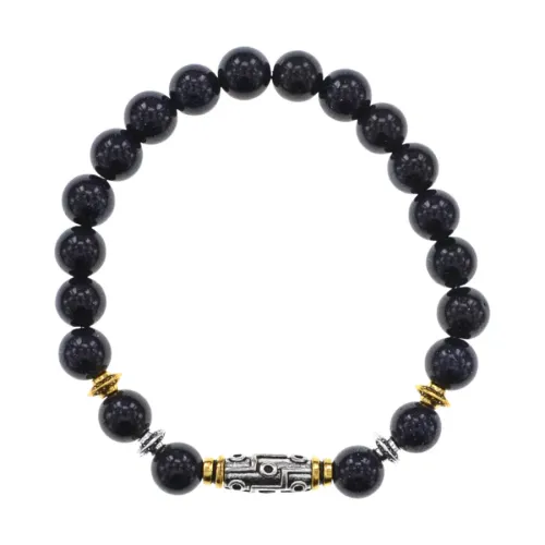 Стрейч-браслет с бусиной Дзи из бижутерного сплава и натурального синего авантюрина.