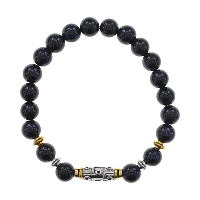 Браслет с 9-глазой бусиной Дзи, нат.камень Синий авантюрин 8мм BSH-11-02