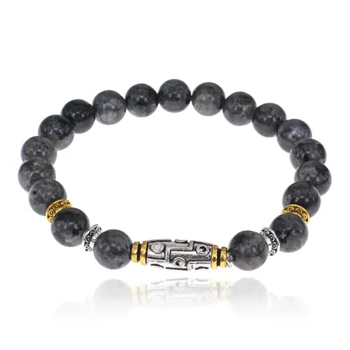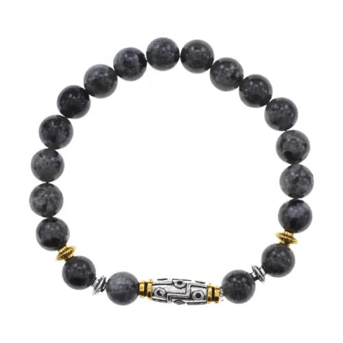 Стрейч-браслет с бусиной Дзи и натуральным камнем лабрадор.