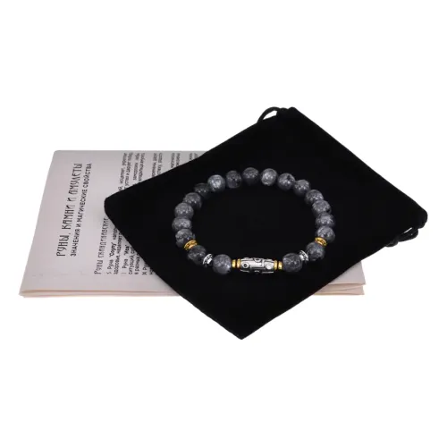 Браслет с 9-глазой бусиной Дзи, нат.камень Лабрадор 8мм BSH-11-08