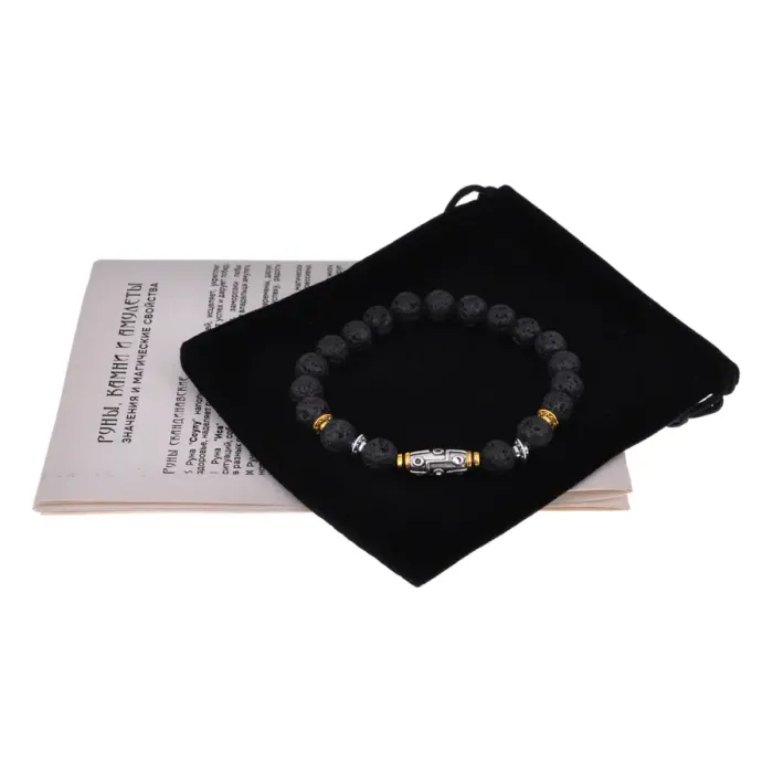 Стрейч-браслет с бусиной Дзи из натурального камня лава (базальт).