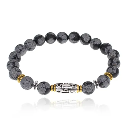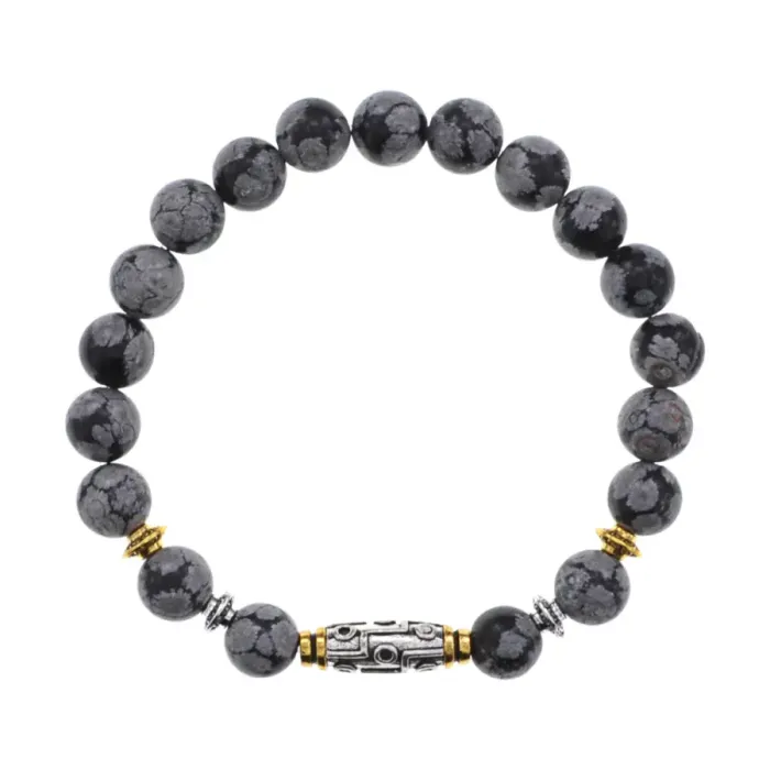 Браслет с 9-глазой бусиной Дзи, нат.камень Обсидиан 8мм BSH-11-14