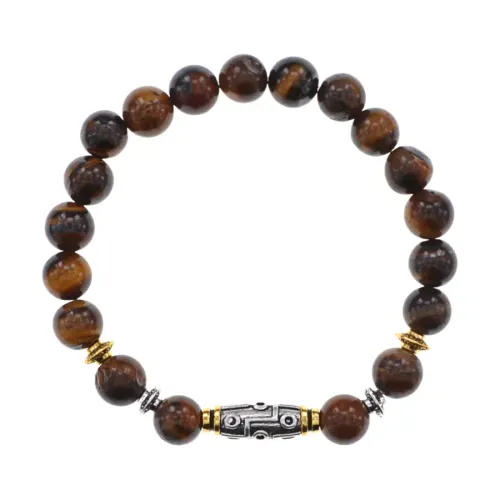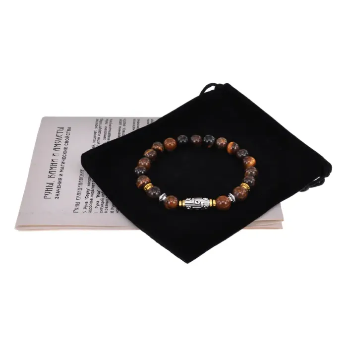 Браслет с 9-глазой бусиной Дзи, нат.камень Тигровый глаз 8мм BSH-11-19
