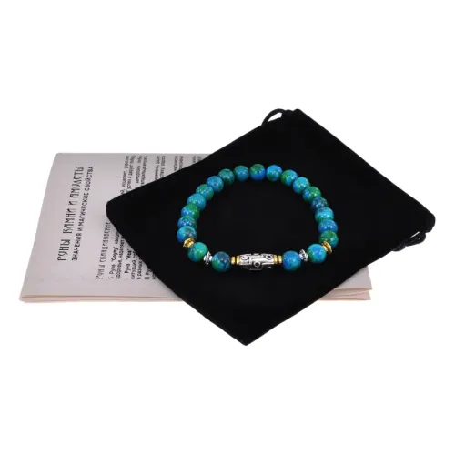 Браслет с 9-глазой бусиной Дзи, нат.камень Хризоколла 8мм BSH-11-21