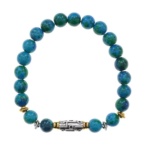 Стрейч-браслет с бусиной Дзи и натуральным камнем хризоколла.