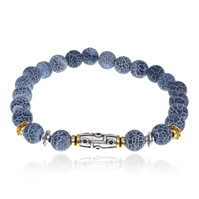 Браслет с 9-глазой бусиной Дзи, нат.камень Синий Африк. агат 8мм BSH-11-27