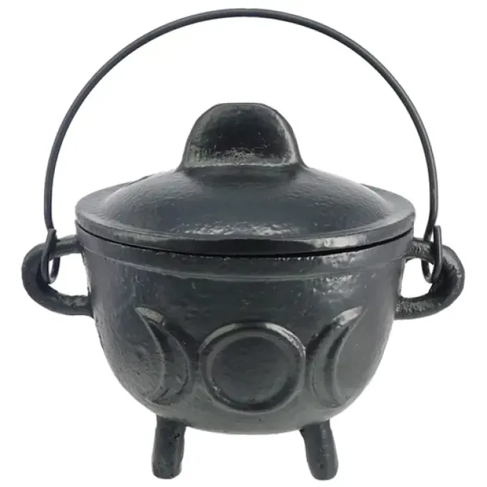 Ведьмин котел с символом Тройной Луны 12х9х15см, D11см, чугун R430-8