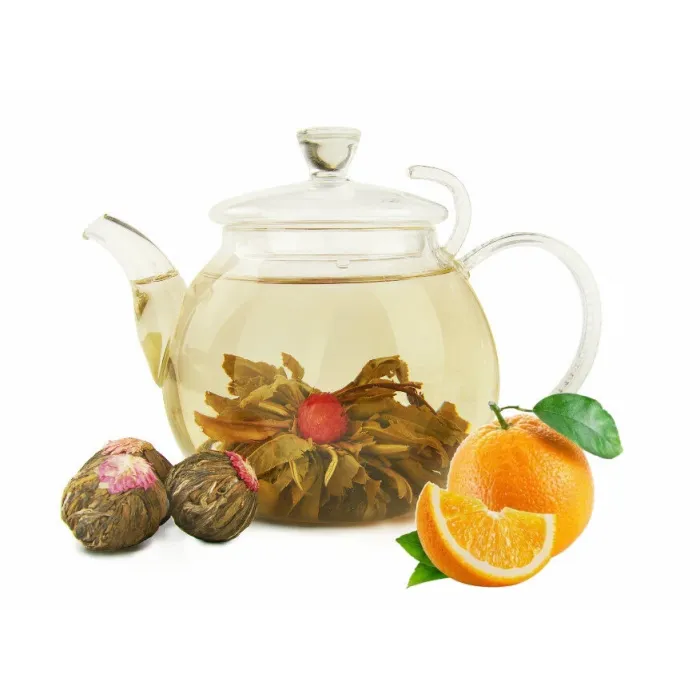 Особенность: раскрывается в эффектный цветок при заваривании; содержит натуральные добавки апельсина и цветков клевера.
