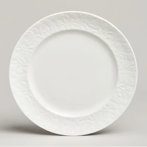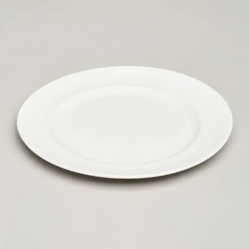 Тарелка изготовлена из фарфора, материала, известного прочностью и гигиеничностью. Декоративные элементы нанесены на поверхность изделия. Конструктивно тарелка имеет стандартную форму с ровным бортиком, что обеспечивает удобство сервировки.