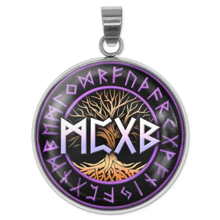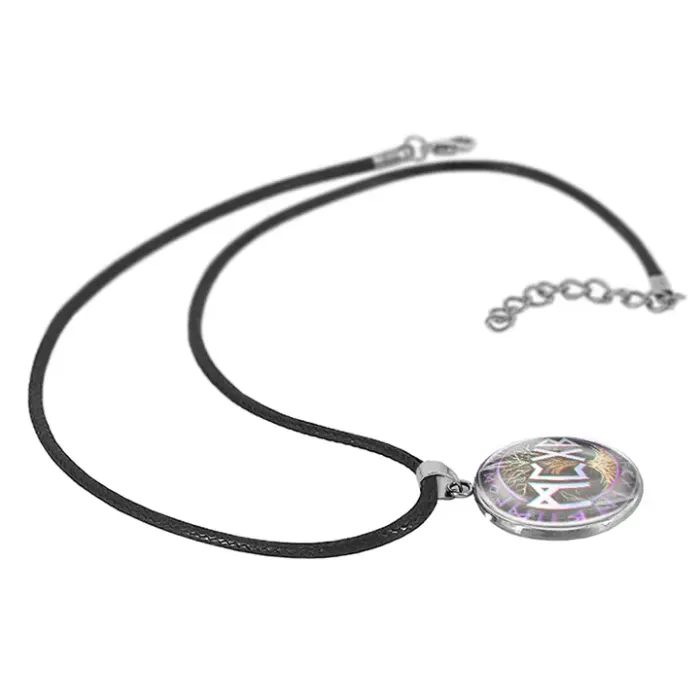 Кулон-амулет из нержавеющей стали с символикой поиска любви. Изображение защищено выпуклой стеклянной линзой.