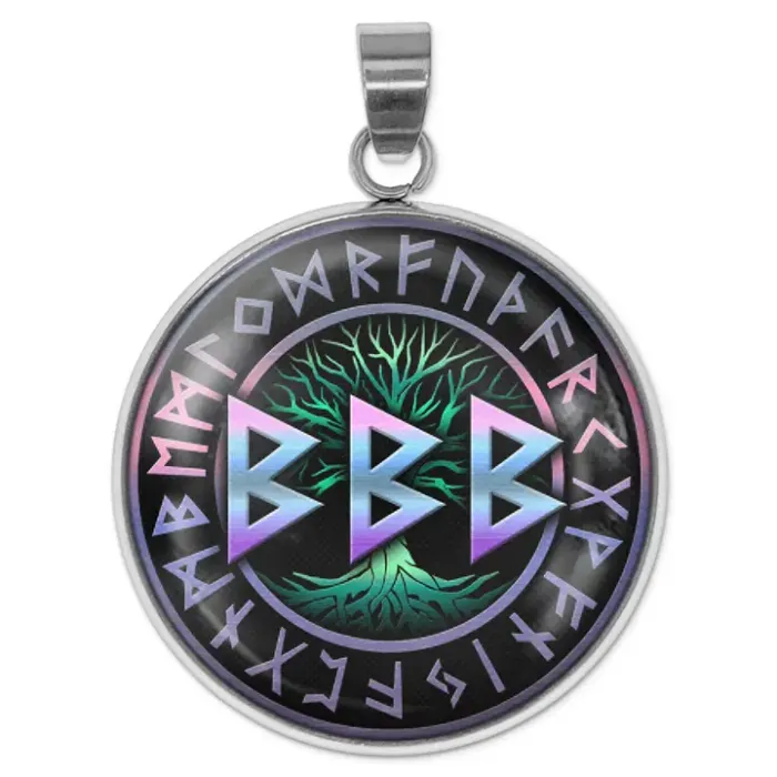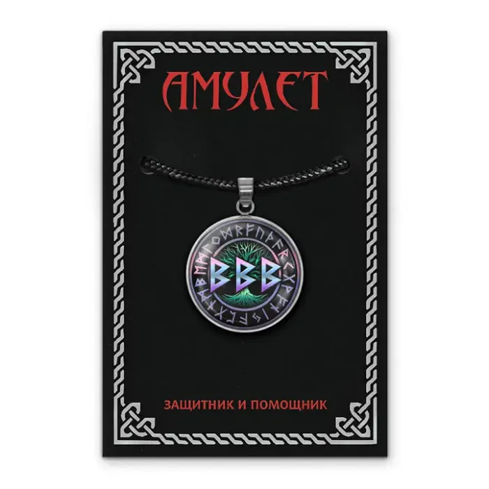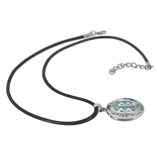 Кулон-амулет из нержавеющей стали с изображением под выпуклой стеклянной линзой.