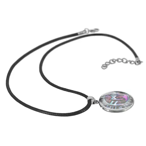 Кулон-амулет из нержавеющей стали с выпуклой стеклянной линзой.
