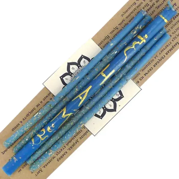 Свечи восковые Вишудха Чакра Новые возможности, 5шт 18см, 16см AUM-7-5