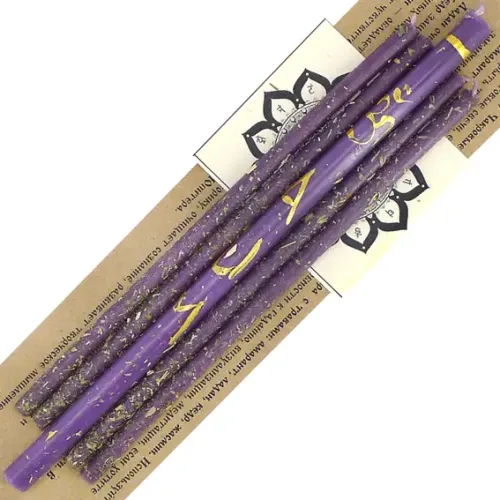 Восковые свечи для медитации и ритуалов, обогащенные травами, с символикой чакры Сахасрара.