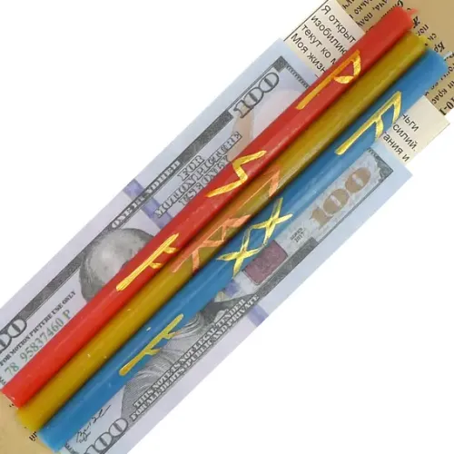Набор восковых свечей Богатство на всех уровнях бытия включает три свечи разных цветов — красную, синюю и жёлтую. Эти свечи созданы для тех, кто стремится к достижению значимых целей и привлечению положительной энергии в свою жизнь.