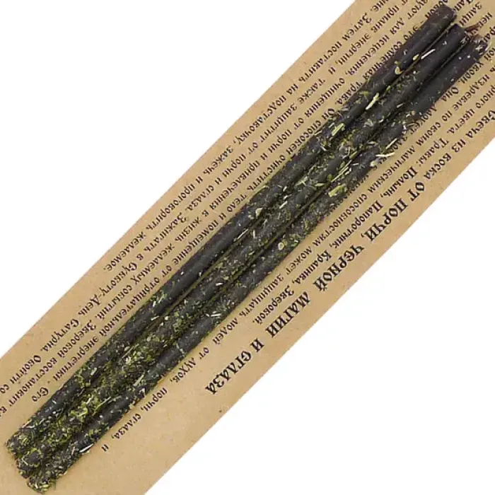 Материал и изготовление: Воск с добавлением трав: полыни, крапивы и зверобоя.