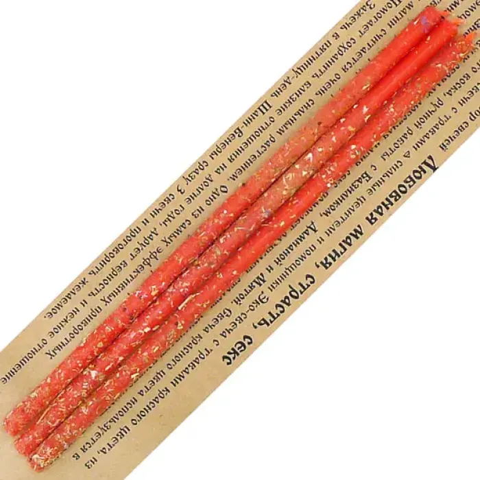 Набор из трёх красных восковых свечей для интерьерного декора и сувенирного использования.
