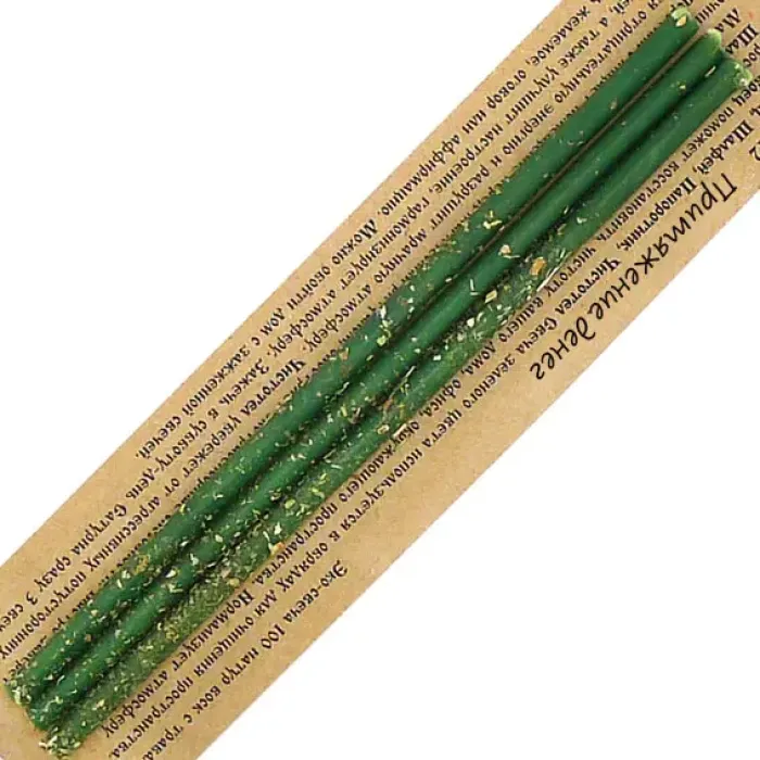 Свечи для обрядов денежной магии из натурального воска зелёного цвета с добавлением трав.