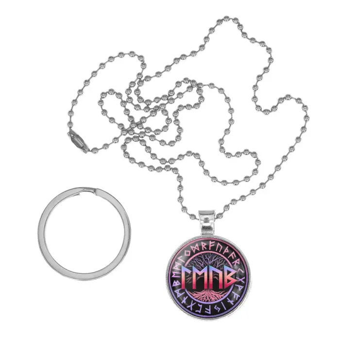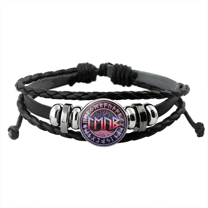 Сувенирный набор, включающий браслет, кулон-брелок и аксессуары с символикой рун. Изготовлен из бижутерного сплава, кожи и стекла.