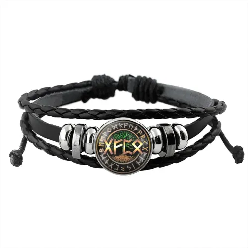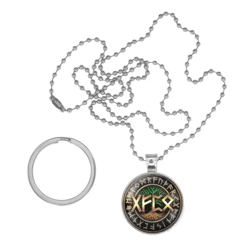 Сувенирный набор, включающий браслет и кулон-брелок с руническими символами.