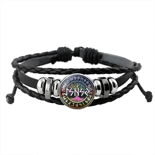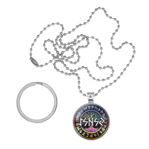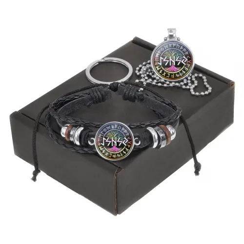 Сувенирный набор, включающий браслет и кулон-брелок с руническими символами.