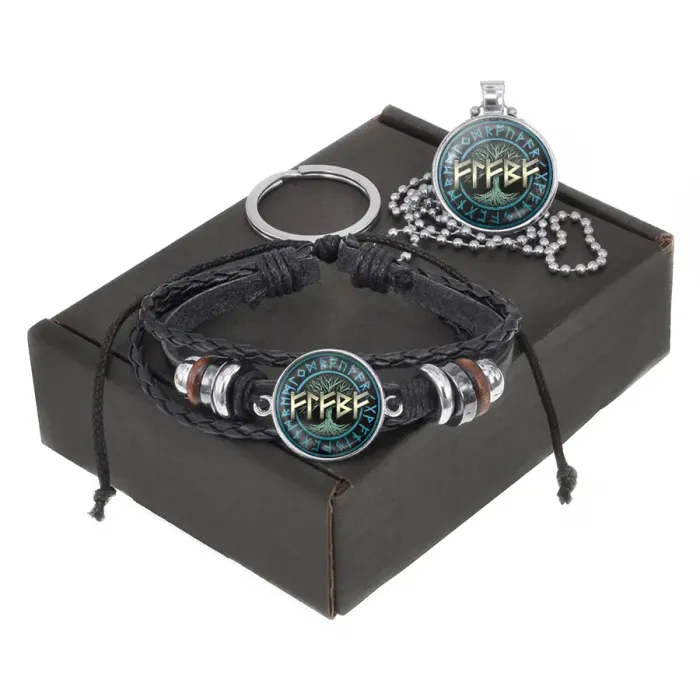 Размеры и комплектация: Браслет с линзой 20 мм, регулируется. Кулон 25 мм. Цепочка длиной 49 см. Кольцо для ключей диаметром 30 мм. Упаковка: черная картонная коробка 11.2 x 8.3 x 3 см с крафт-наполнителем.