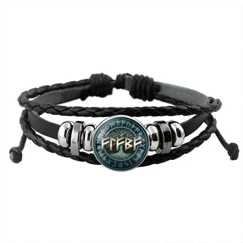 Материал и изготовление: Браслет из кожи с рунами под стеклянной линзой. Кулон-брелок из бижутерного сплава с покрытием под серебро.
