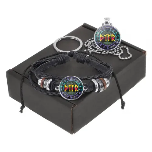 Сувенирный набор с символикой славянских рун. Включает браслет, кулон-брелок и аксессуары.