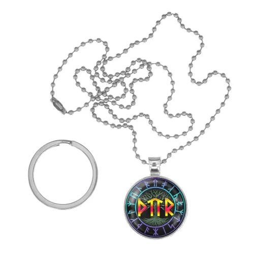 Размеры и комплектация: Диаметр руны на браслете — 20 мм, кулона — 25 мм. В комплекте шариковая цепочка длиной 49 см, кольцо для ключей диаметром 30 мм. Упаковка — картонная коробка размером 11,2 x 8,3 x 3 см.