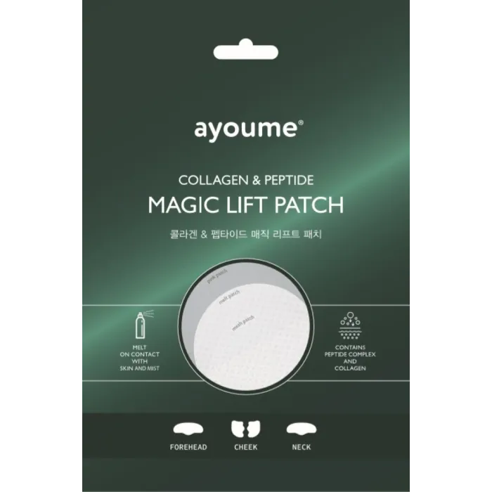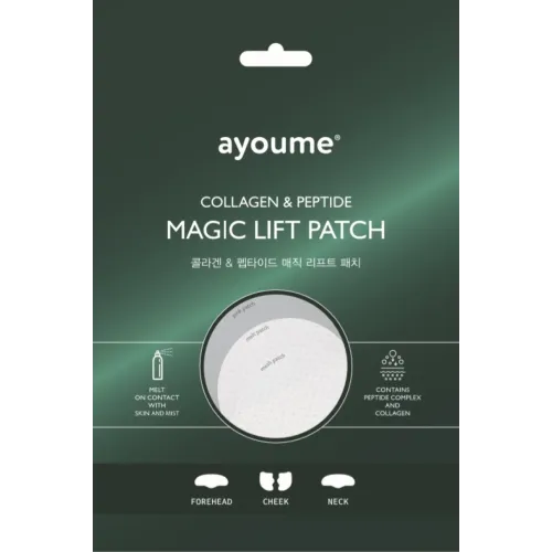 Тающие патчи для лица AYOUME MAGIC LIFT PATCH с коллагеном и пептидным комплексом предназначены для интенсивного ухода за кожей. Эти патчи, которые растворяются при контакте с влагой, обеспечивают глубокое проникновение активных компонентов в эпидермис. В упаковке содержатся 4 патча разной формы, подходящих для использования на лбу, шее и носогубной зоне. Благодаря увлажняющим свойствам они делают кожу мягкой и шелковистой. Патчи плотно прилегают к коже, насыщая её активными веществами и улучшая состояние эпидермиса.