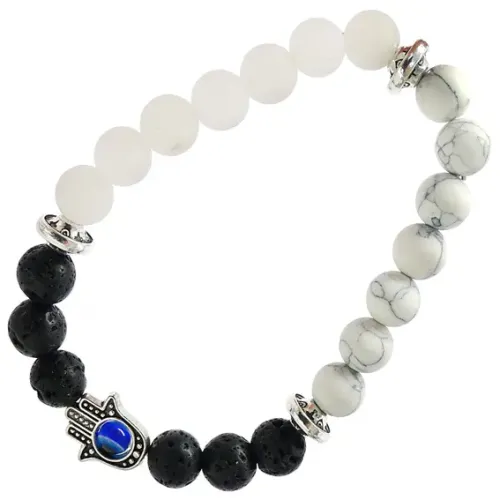 Браслет с подвеской от сглаза (Хамса), камень,8мм BX057