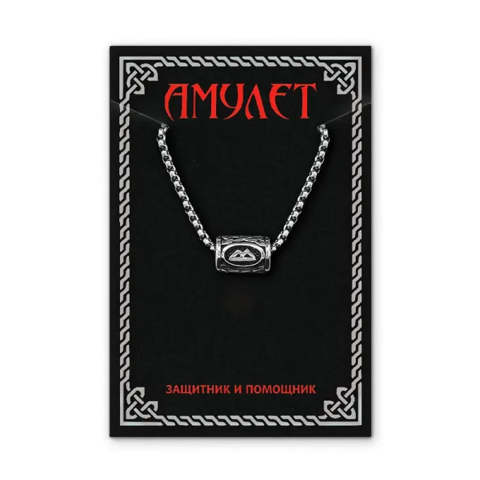 Кулон-руна на цепочке. Изготовлен из нержавеющей стали, дизайн включает символ Беркана.