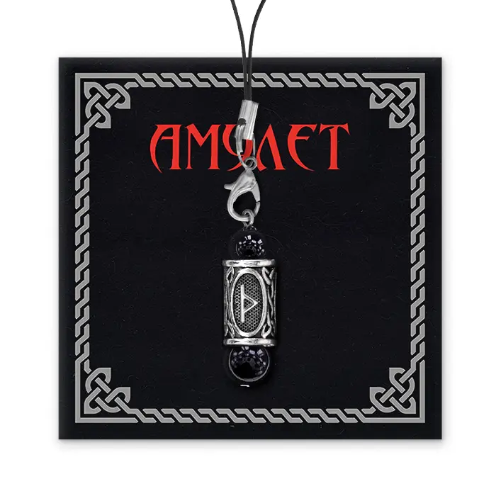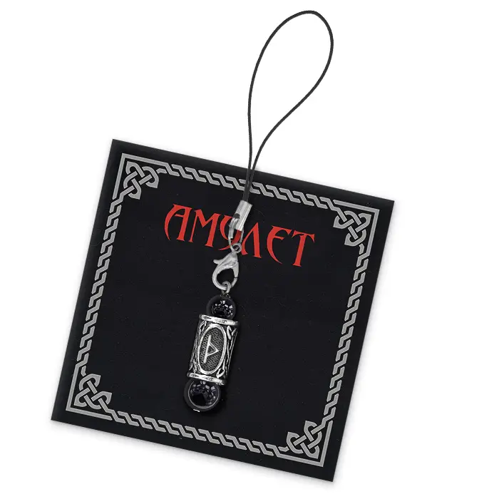 Подвеска для телефона с руной Турисаз, черный агат POD-01-09
