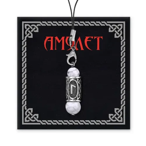 Подвеска-брелок для телефона из натурального камня кахолонг с руной Лагуз.