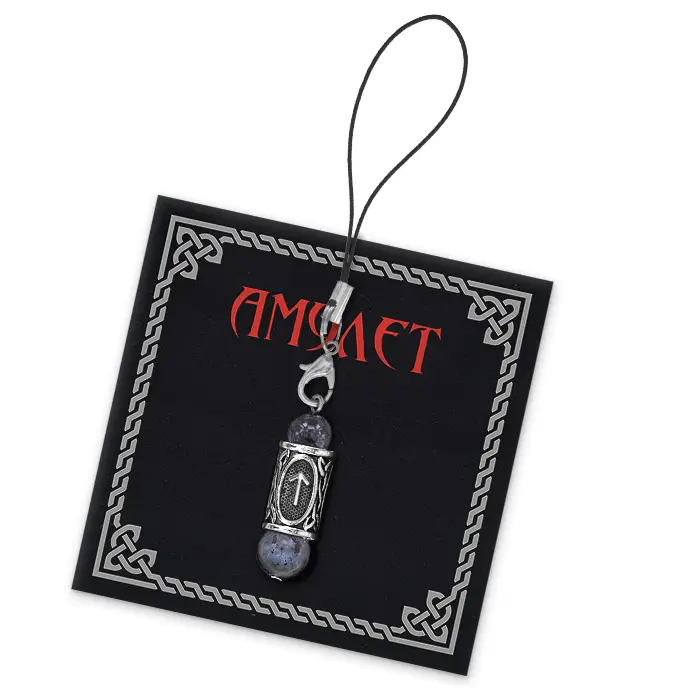 Подвеска - брелок из натурального камня Лабрадор с руной Тейваз станет стильным и значимым аксессуаром для телефона. Этот уникальный предмет не только украшает, но и обладает глубоким символическим смыслом. Лабрадор традиционно ценится как оберег для семьи и дома, а также талисман высших магов и целителей.