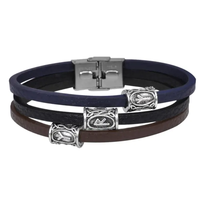 Материал и изготовление: Натуральная кожа, бижутерный сплав под серебро (руны), нержавеющая сталь (застёжка).