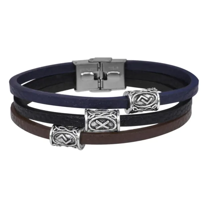 Материал и изготовление: Натуральная кожа, бижутерный сплав под серебро (руны), нержавеющая сталь (застёжка).