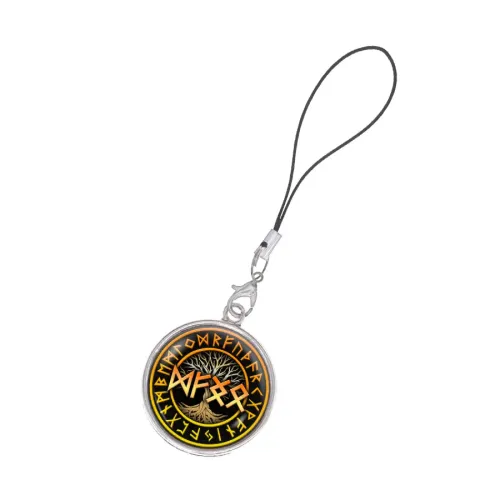 Подвеска-брелок для телефона из бижутерного сплава под серебро с изображением, защищённым выпуклой стеклянной линзой.