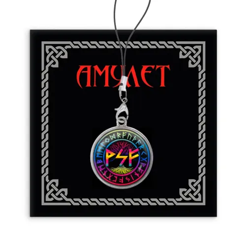 Назначение и особенности: Сувенирная подвеска для телефона. Украшена рунической формулой.
