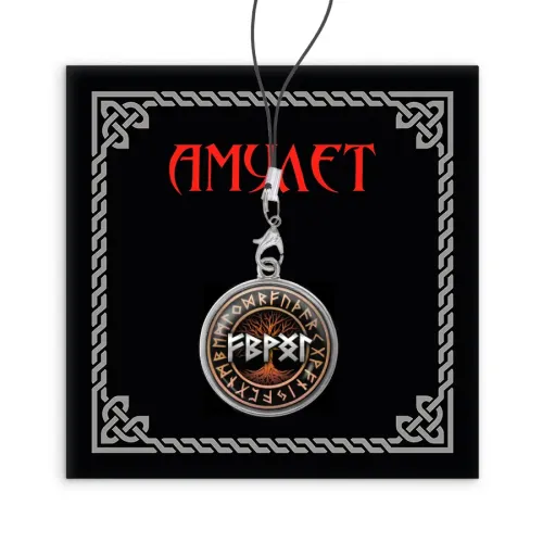 Назначение и особенности: Сувенирная подвеска для телефона. Украшена руническими символами.