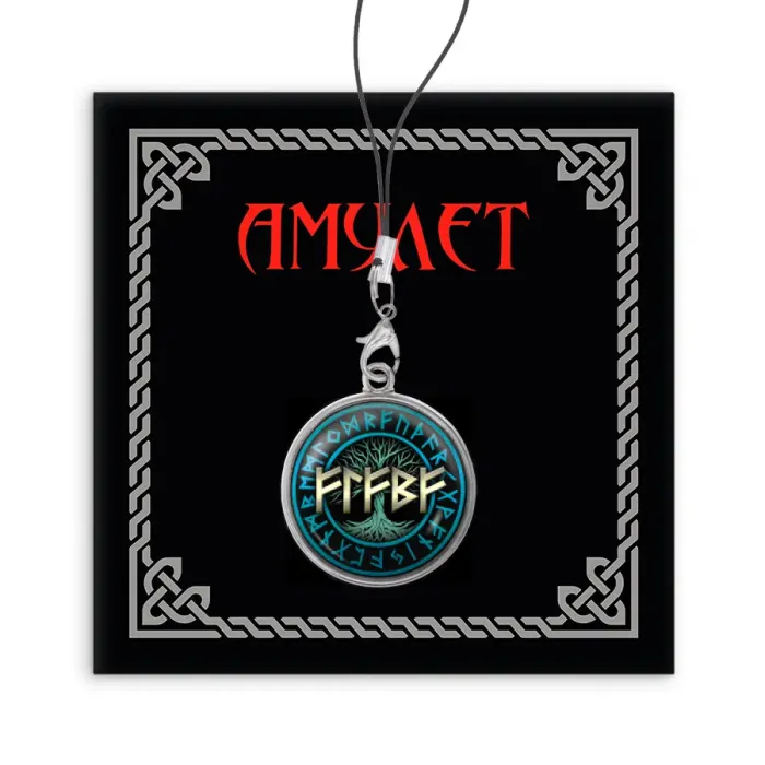 Назначение и особенности: Сувенирный брелок для телефона. Изображение содержит руны Феху, Лагуз, Беркана.