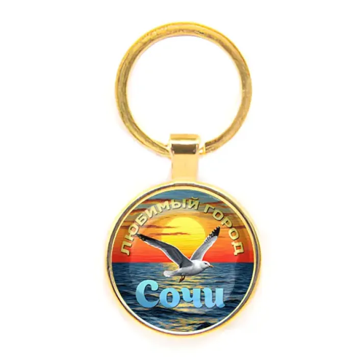 Круглый брелок для ключей из бижутерного сплава с изображением города.