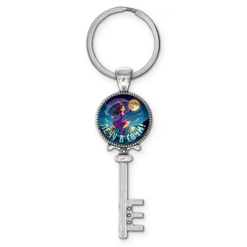 Брелок-сувенир в форме ключа из бижутерного сплава с покрытием под бронзу и стеклянной линзой.