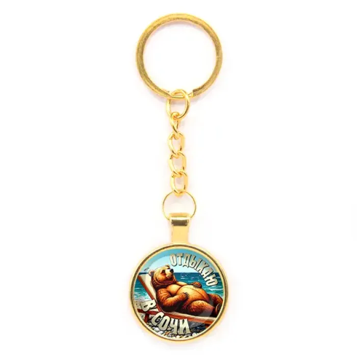 Круглый брелок, цвет золото, с цепочкой, Отдыхаю в Сочи C0104020