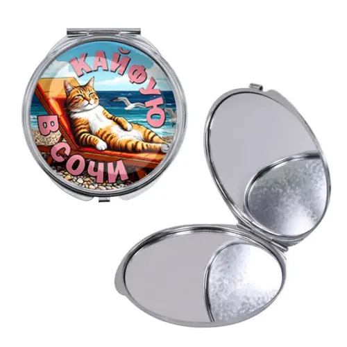 Круглое складное зеркало, цвет серебро, Кайфую в Сочи C0105016